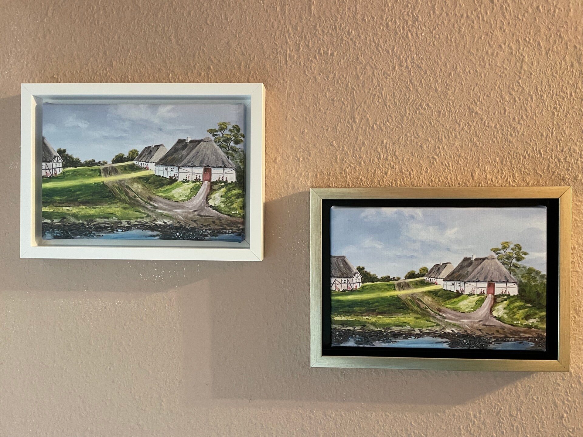 Dieser kleine Kunstdruck auf Leinwand hat ein Format von ca.20x30cm und wird mit einem Schattenfugen Rahmen in der Farbe weiß geliefert.