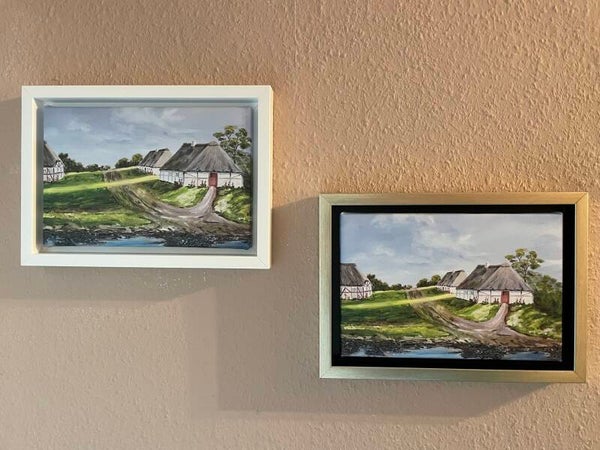 Fischersiedlung Wunderschöner kleiner Druck auf Leinwand mit Rahmen Weiß